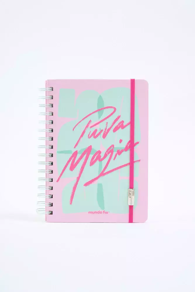 Formato A5 15x20cm, anillada, tapa dura, elastico con dije y señalador
